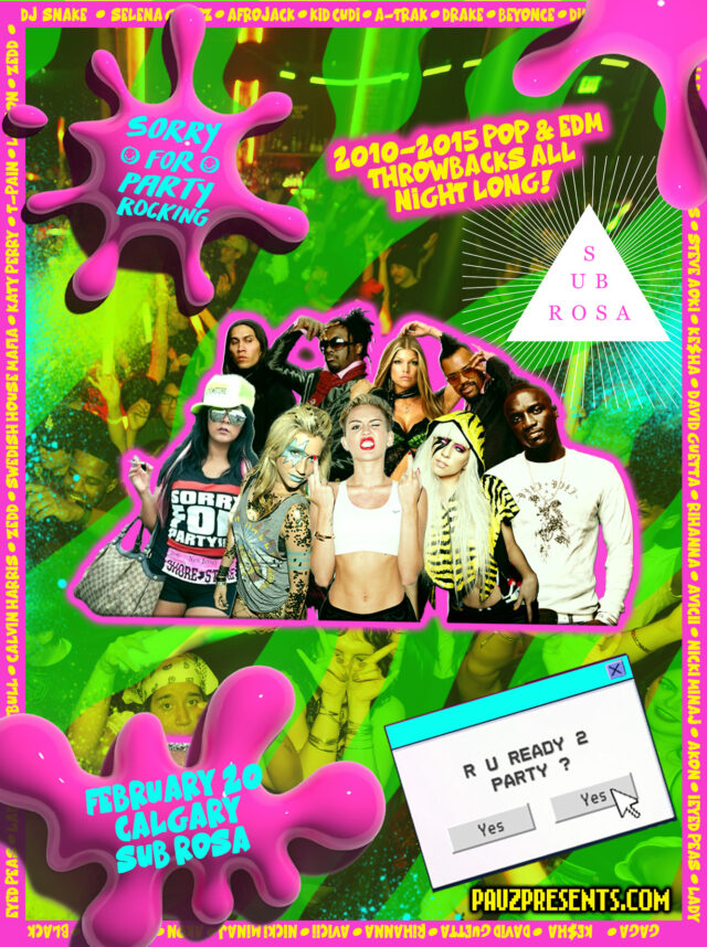 Join us as we turn back the clock to the biggest pop, EDM, and party rock anthems of 2010–2015 at Sorry For Party Rocking — February 20, 2026, 9PM–2AM.