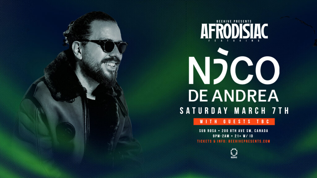 Join us Saturday, March 7, 2026 as International DJ Nico De Andrea returns to Sub Rosa for a night of high-energy afro house and house music.